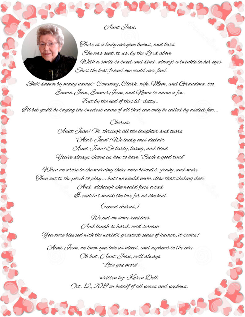 Karen’s poem to Aunt Jean 2012